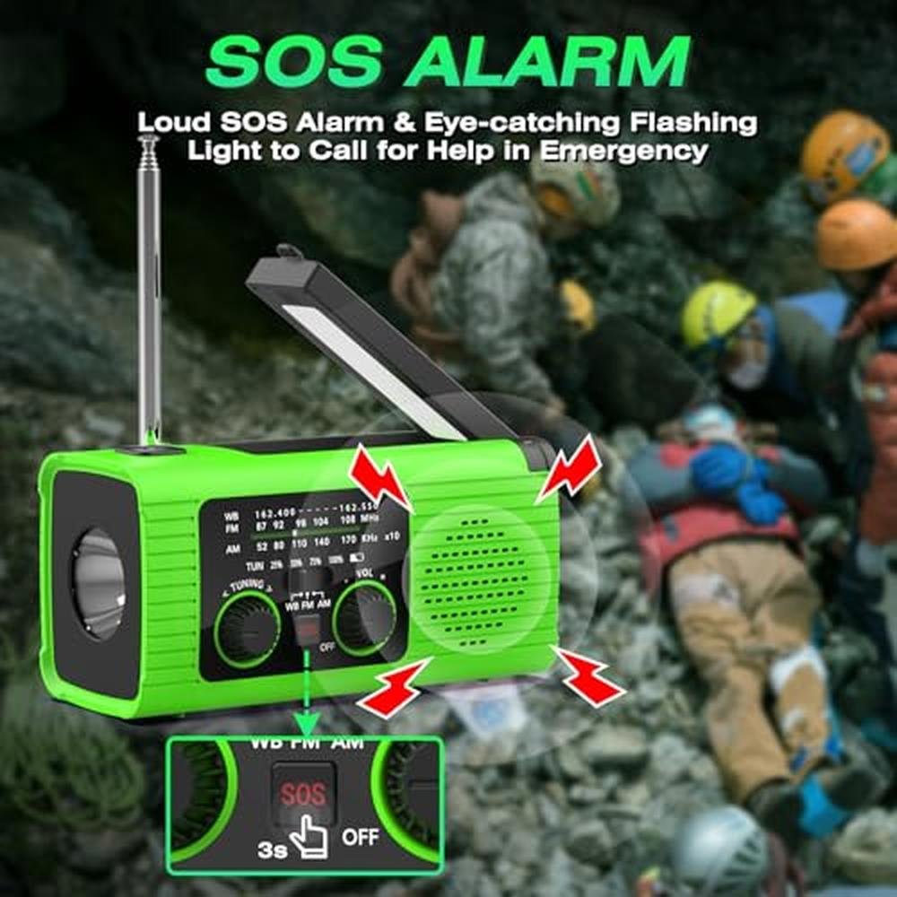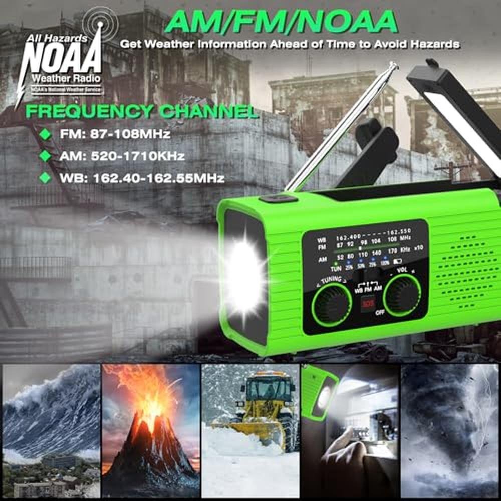 - [Continuous Power Supply]: Emergency radio is always at the ready! The powerful weather radio has 3 charging options, with a 4000mAh rechargeable battery that can be charged via USB cable, solar panel or hand crank. More convenient and reliable for instant, automatic, all-day messaging about weather alerts. Remains operational in the event of an emergency power outage