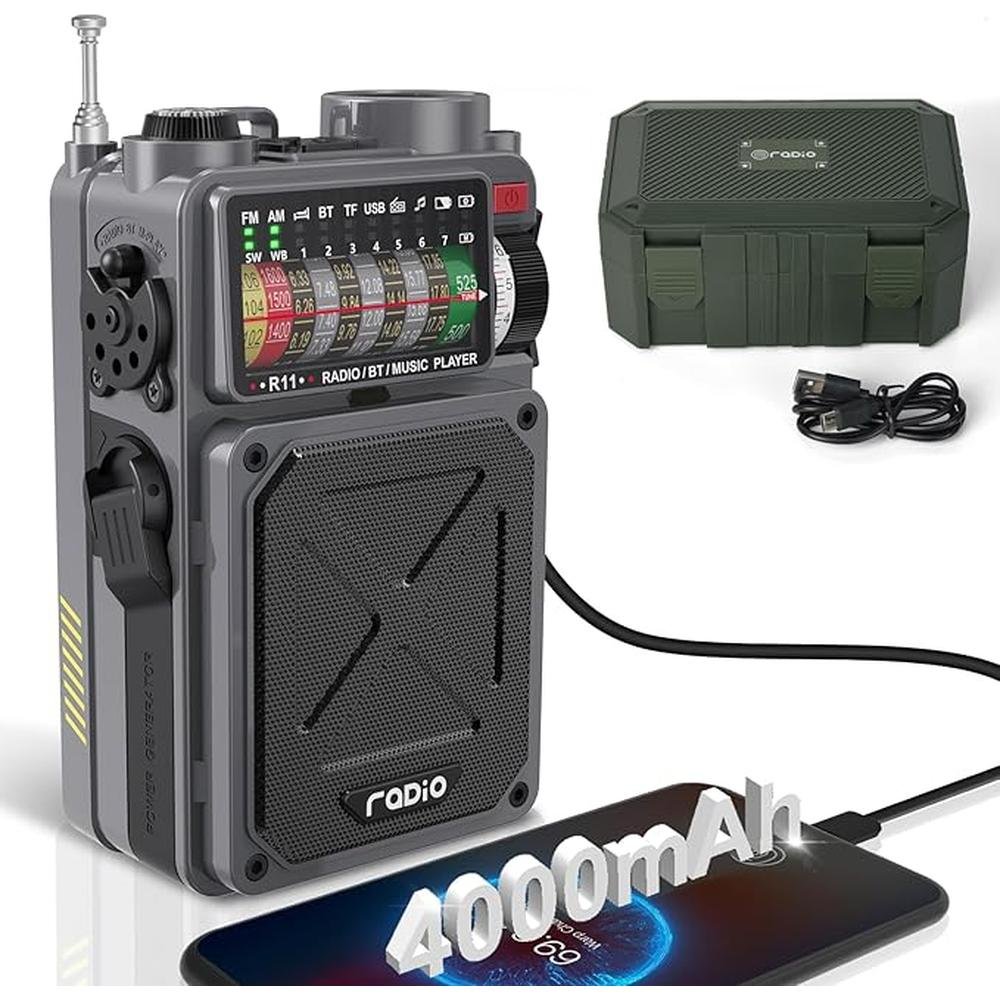 - 3 Ways To Power The RadioThis portable shortwave radio has a built-in 4000mAh rechargeable battery with 3 charging options, you can use the Type-C connector to charge the radio on a daily basis, providing up to 32 hours of playback time on a full charge. In case of emergency, you can use the hand crank and solar power to charge the radio in an emergency.