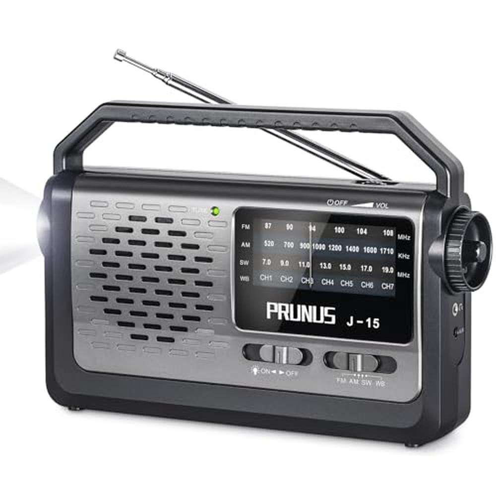 PRUNUS NOAA Weather AM FM Portable Radio,Battery Operated Radio by 3X D Cell Batteries or AC Power with Best Reception,Flashlight, Earphone Jack for Emergency Household&Outdoor,Plug in Wall by J15WB