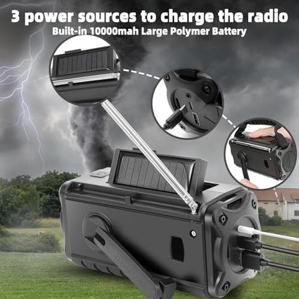 QAUYYW Upgraded 37000mWh Emergency Hand Crank Radio AM/FM with LED Flashlight Solar Radio, Portable Weather Radio, Emergency Cell Phone Charger for Family Outdoor Camping and Emergency Rescue Us