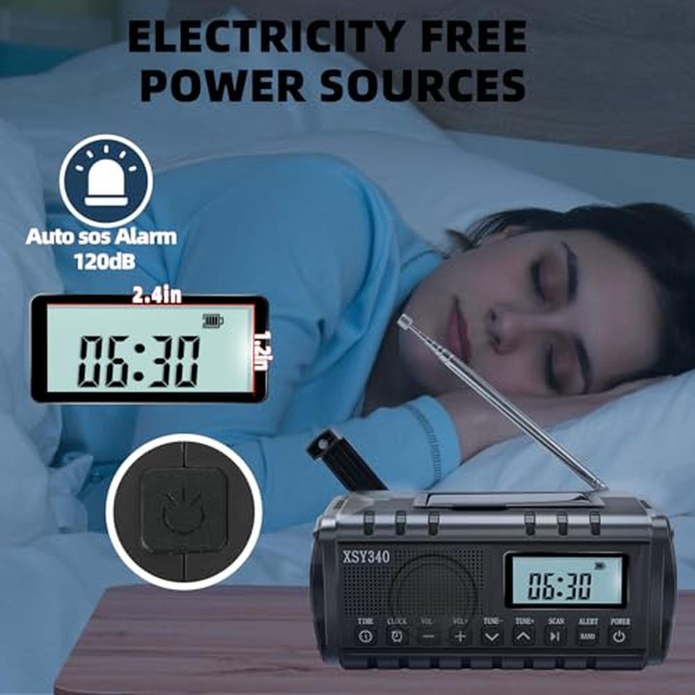 - 24.8 Inch EXTENDED ANTENNA Hand cranked solar powered emergency radio with 24.8 inch extended antenna and DSP chip ensures that you receive emergency weather warning signals faster and in a more timely manner! In special situations, this could very well save your life! The Extra Alarm Clock feature not only saves you the cost of purchasing an alarm clock, it also provides you with a timer function at all times! The extra alarm clock feature not only saves you money on the purchase of an alarm clock, but also provides you with a timer function at all times!