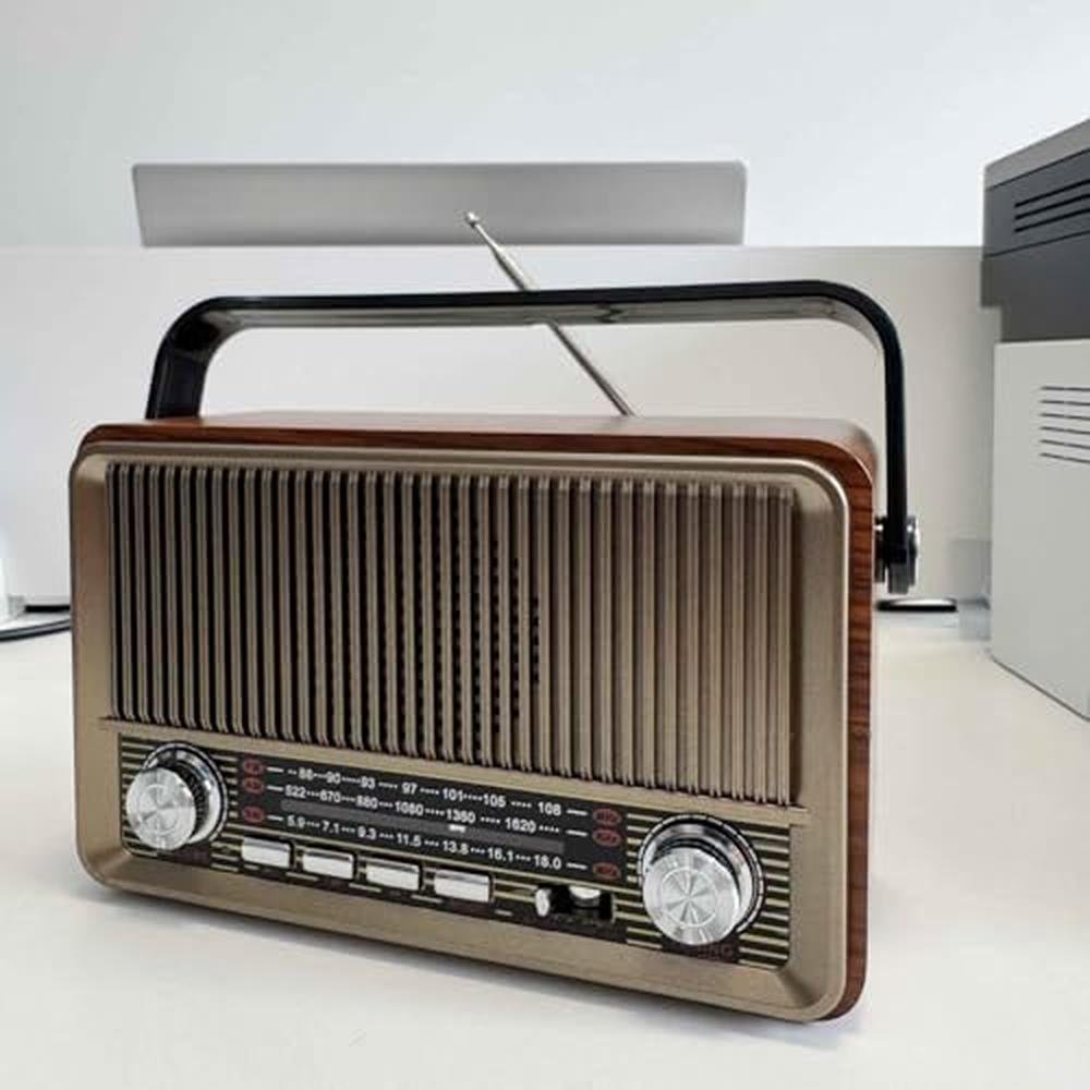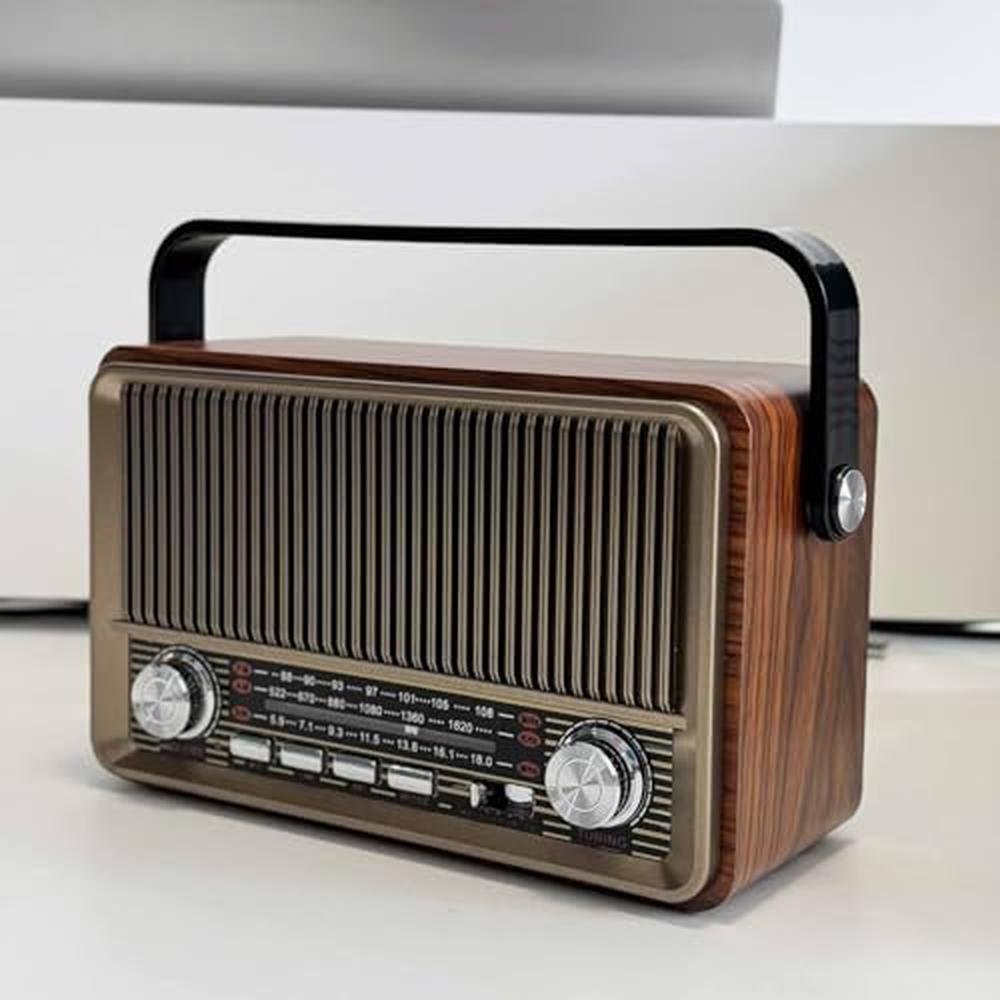 - Retro Design: This portable radio boasts a vintage-inspired aesthetic with a wooden cabinet and classic radio dial, perfect for nostalgic listeners.