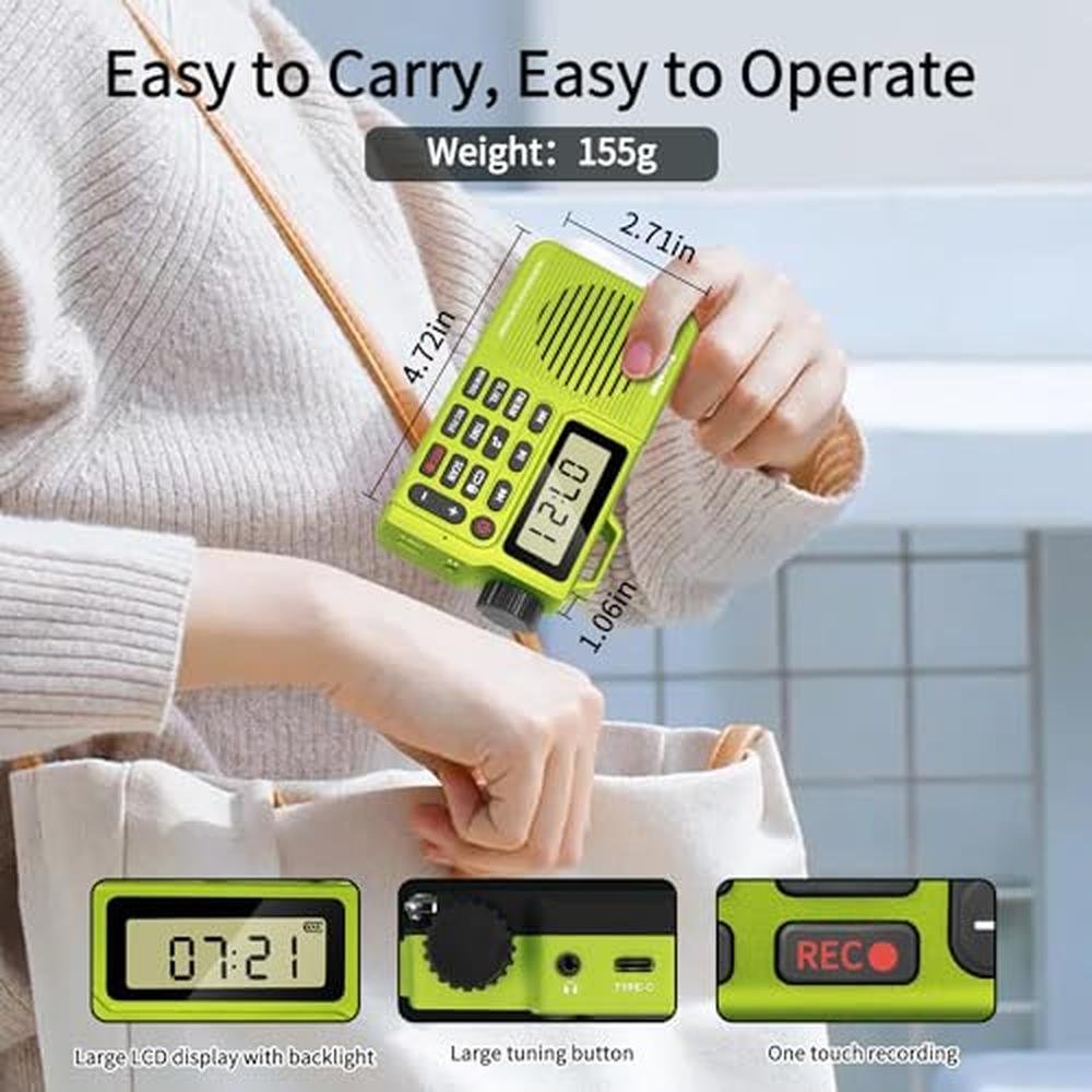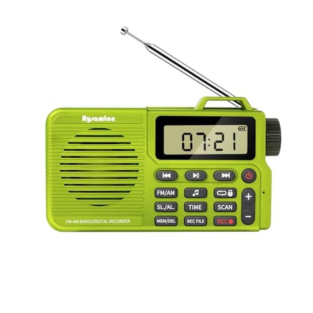 Rysamton Portable AM/FM Radio, Digital Radio Recorder, Bluetooth 5.0 Speaker, Alarm & Sleep Function, 12/24H Time Display (Yellow Green)
