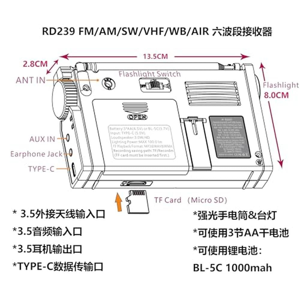 - Multiple power: Powered by 3* AA or BL-5C Batteries for Outdoor Convenience; TYPE-C Input Provides Alternative Power Source.with ANT jack pocket small radio