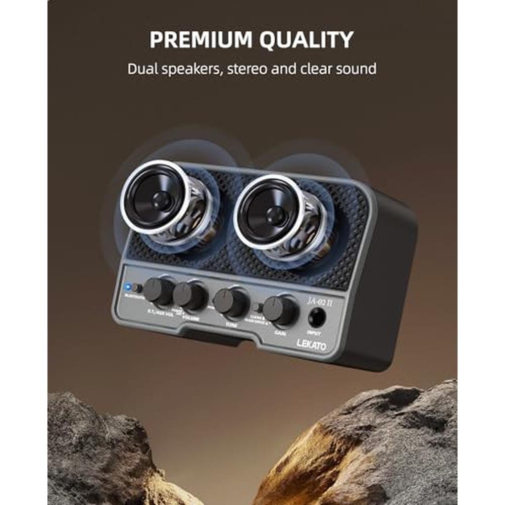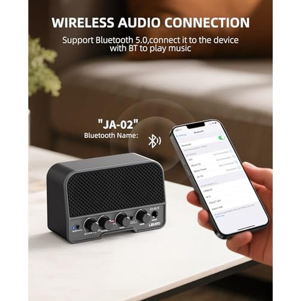 Immerse yourself in the world of music with the LEKATO Mini Guitar Amp, a premium rechargeable and portable electric guitar amplifier designed for guitarists on-the-go. This compact 5W amp features clean and overdrive channels, providing a versatile tone that suits various playing styles. As a top-tier guitar amp, it offers excellent sound quality and durability, making it an ideal choice for musicians seeking a reliable guitar amplifier for practice sessions. Whether you're a beginner or a seasoned guitarist, this mini amp is a great addition to your gear, allowing you to focus on perfecting your craft without breaking the bank or sacrificing sound quality. With its sleek black design and portable size, you can take your music anywhere, anytime. The LEKATO Mini Guitar Amp is perfect for daily practice, and its Bluetooth connectivity allows you to stream your favorite music or backing tracks, making it an ultimate practice companion. Experience the freedom to play wherever you want, with the LEKATO Mini Guitar Amp, a high-end guitar amplifier that redefines the way you practice and perform.