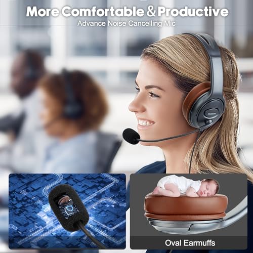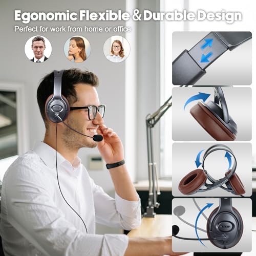 EMAIKER Noise Canceling USB Headphones with Microphone & in-Line Controls for Dragon Dictation, Over Ear PC Headphones for Office Work from Home Skype Teams Zoom Meeting WebEx Softphone