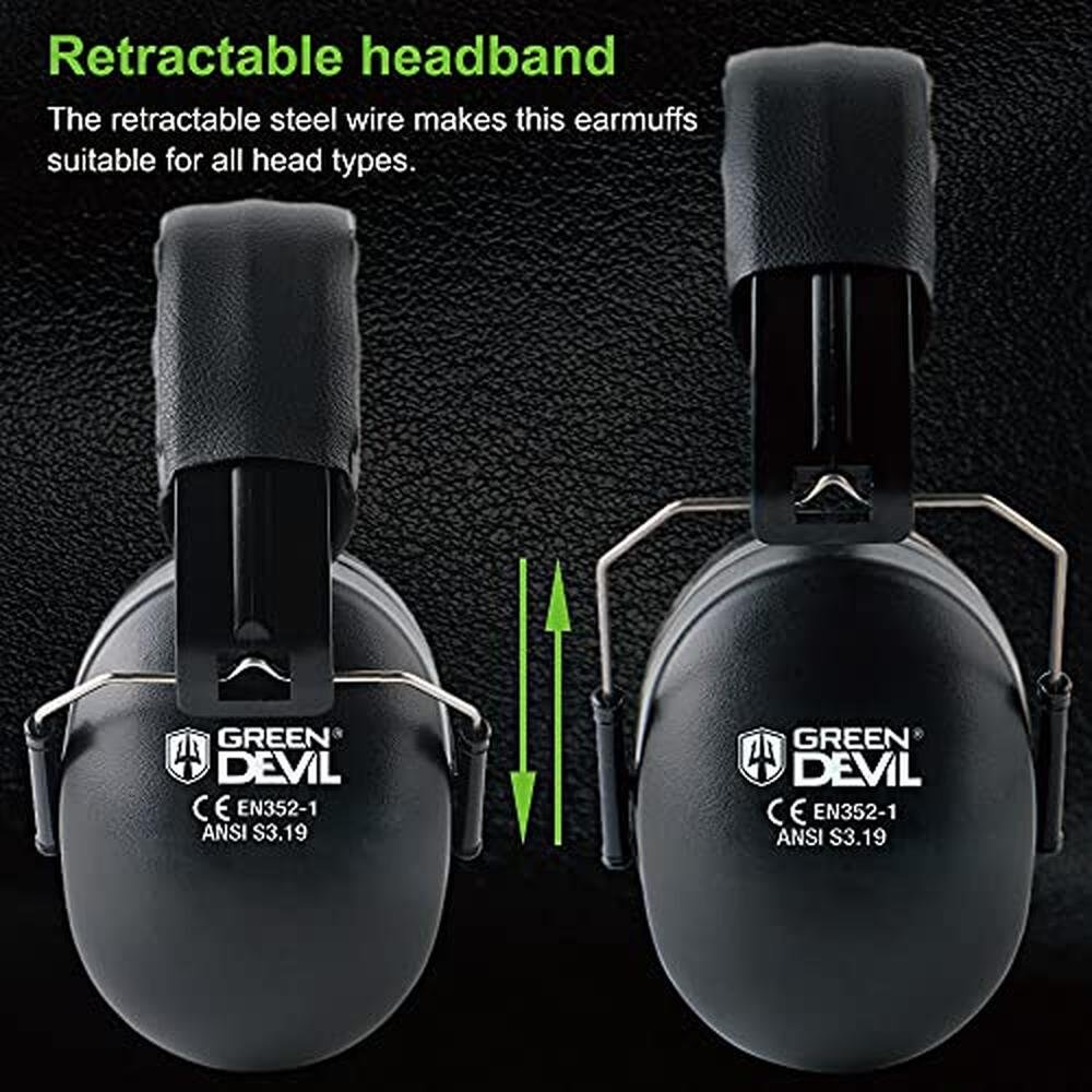 - Adjustable Headband Comfort Design:GREEN DEVIL hearing protection ear muffs for noise reduction can be flexibly adjusted to suit various sizes,cover all big&small heads,one size fits all. High quality adjustable double-deck padded headband design ensures that it fits firmly and comfortably around your head.