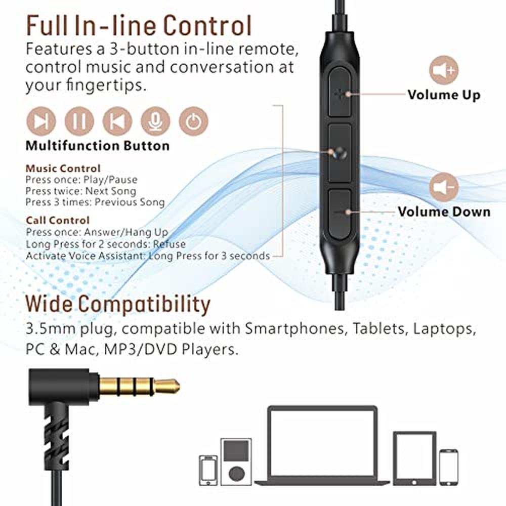 - Wide Compatibility: The universal three-button remote with a microphone lets you adjust volume, skip tracks, handle calls, and use voice controls on both iOS and Android. The 3.5mm connector works with CD players, laptops, digital audio and MP3 players