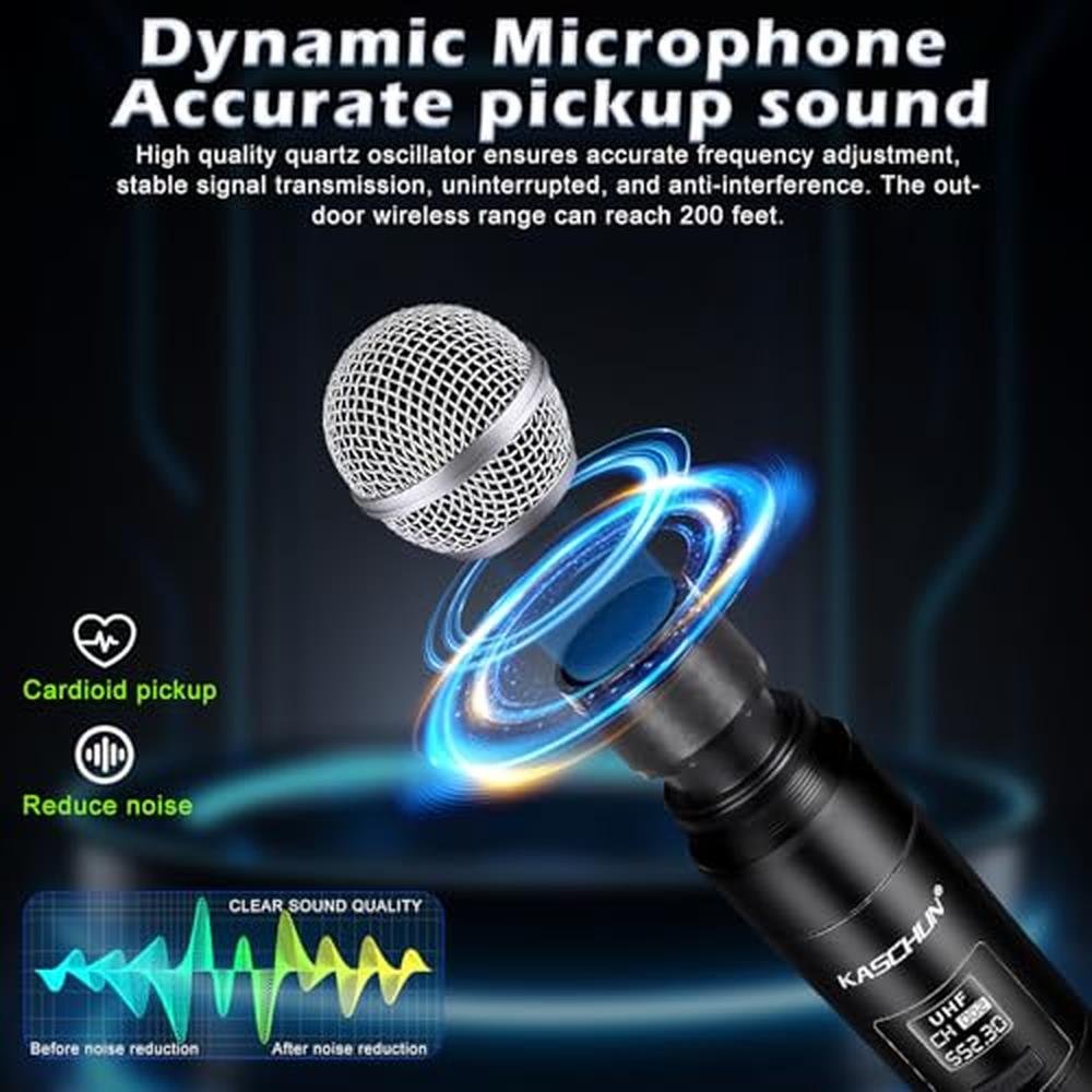 Microphone Kaschun | Kaschun KA-328 Dual UHF Handheld Microphones | 200ft Long Range Plug & Play Cordless Microphone System