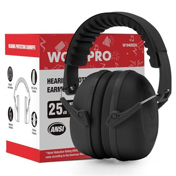 - Ear Protection: WORKPRO kids noise cancelling headphones with official certification- ANSI S3.19-1974 and CE EN 352-1, provide kids hearing protection with NRR 25dB. Kids ear protection earmuffs with soft padded headband and extra thick ear pads make sure kids' ear protection and their comfit wear. Less pressure, kids friendly clamping force