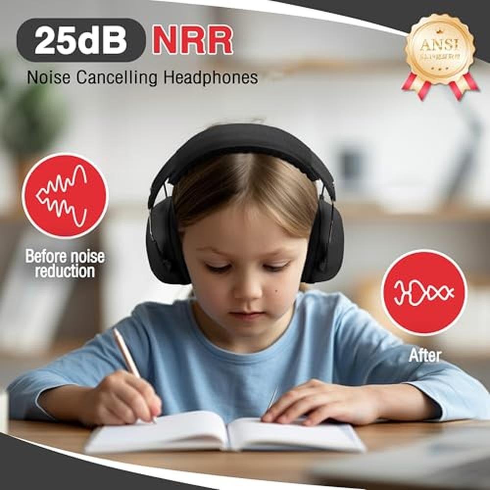 Noise Cancelling Headphones for Kids, NRR 25dB Kids Ear Protection for Autism, Noise Reduction Safety Ear Muffs for Concentration Shooting Range DIY, Black