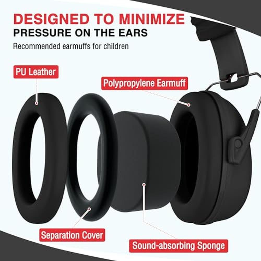 - Portable & Comfortable: Our noise cancelling ear muffs can be folded up for compact storage, enabling you to bring them to any noisy scenes. Earmuffs are made of extra thickened sound-absorbing sponge on the inside and covered with premium PU leather on the outside for comfy, cozy wearing no mater how long you put them on