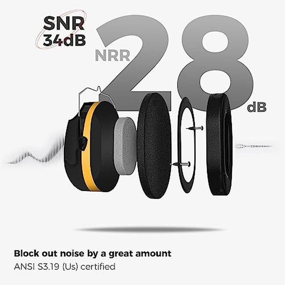 - Constructed by solid ABS shell and thickened foam, the ear muffs achieve NRR 28 dB (SNR 34 dB) rating, ANSI S3.19 (US) certified, and effectively reduce the damage of high decibel noise while ensuring comfy wearing