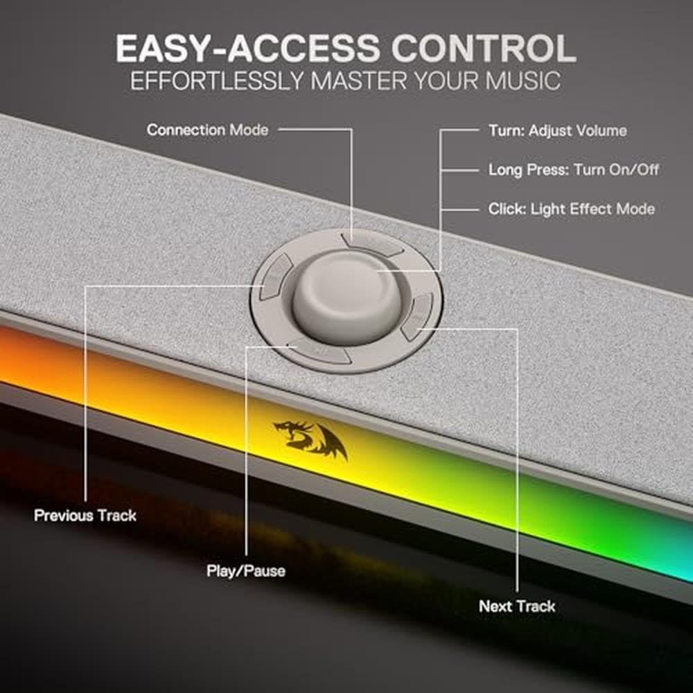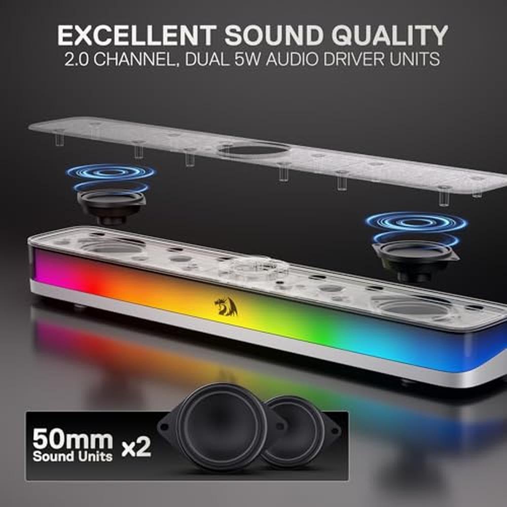 - The Redragon GS515 RGB Desktop Soundbar is designed to provide an ultimate audio experience, with advanced features such as wireless connectivity and a refined design