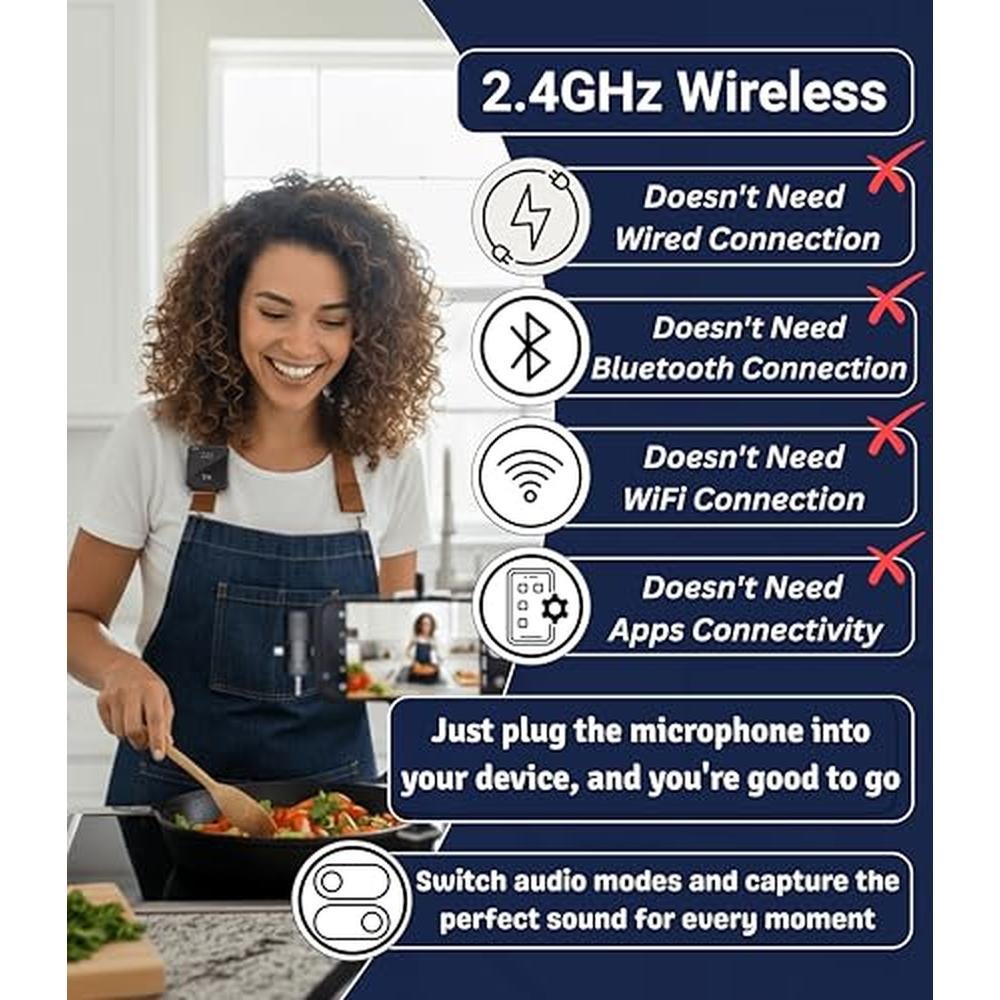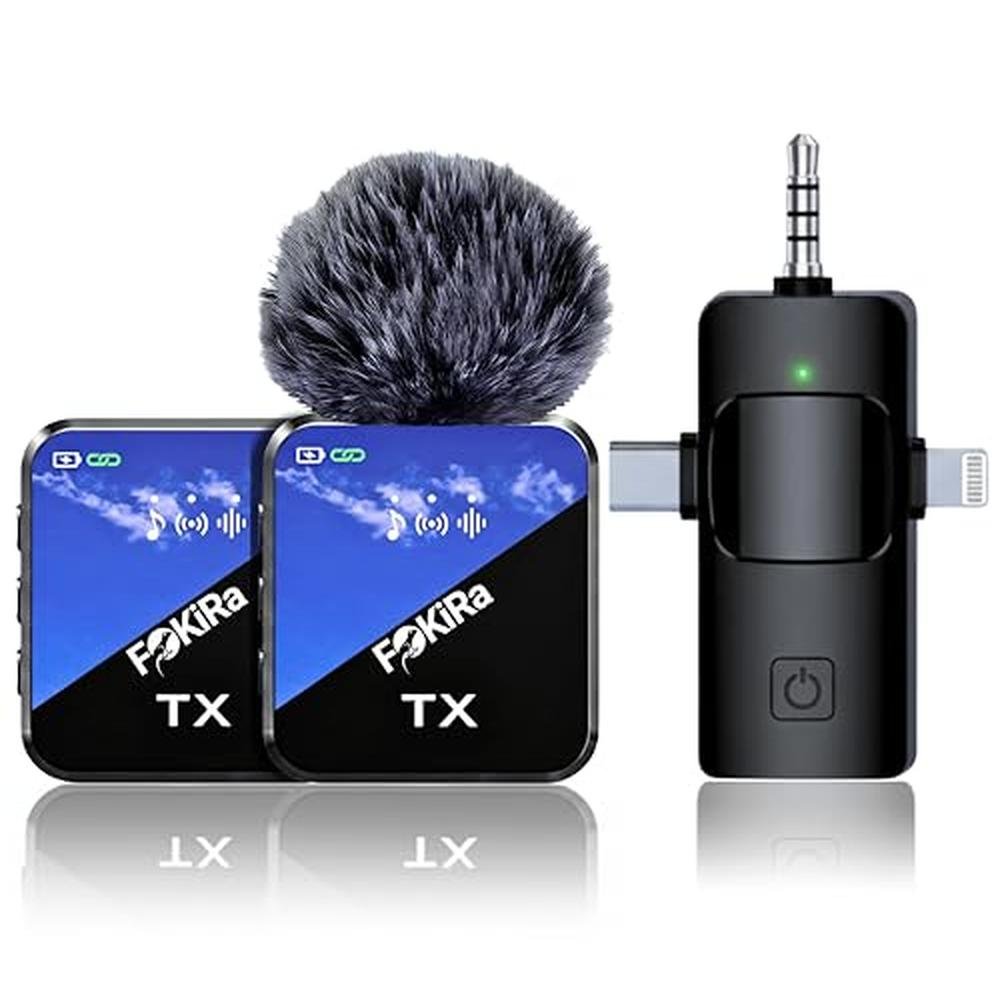 Experience crystal-clear audio with our Smart Noise-Cancelling Wireless Lavalier Microphone, designed to deliver exceptional sound quality for interviews, vlogging, podcasting, and more. Featuring advanced noise cancelling technology, this wireless microphone effectively minimizes background noise, ensuring your voice is heard loud and clear. With a universal receiver and 45M long-range wireless transmission, you can move freely without worrying about signal loss. Enjoy up to 12 hours of battery life on a single charge, making it perfect for extended recording sessions. Whether you're a content creator, podcaster, or journalist, our noise-cancelling wireless lavalier microphone is the ideal choice for capturing high-quality audio. Upgrade your sound with the FOKiRa Wireless Microphone, the perfect audio solution for creators, professionals, and anyone who values crystal-clear sound. Crafted for versatility, the FOKiRa mic includes a 3-in-1 receiver that works seamlessly with smartphones, cameras, and laptops. No extra gear or adapters needed, just plug in and go. Its the ultimate all-in-one tool for any recording setup, from the street to the studio. Say goodbye to background noise. With advanced noise-canceling technology, the FOKiRa lavalier mic focuses on your voice, blocking out distractions like traffic, wind, or crowd chatter. Your audience hears only what matters, you. Need to move while you record? No problem. The FOKiRa mic offers an incredible 45-meter (150-foot) wireless range, giving you the freedom to roam while staying connected. Whether you're filming outdoors or presenting indoors, your sound stays stable and sharp. Designed for long sessions, the mic delivers up to 12 hours of battery life, so you can record worry-free all day. From podcasts to presentations, FOKiRa keeps you powered and productive. Best of all, its plug-and-play. No software, no hassle, just instant, professional audio. Even first-time users will feel like pros. The built-in LED interface shows connection strength, battery life, and pairing status, keeping you in control at a glance. Built tough with premium materials, the FOKiRa microphone is made to last. Plus, if you ever need help, our dedicated support team is ready to assist. With FOKiRa, you're not just recording sound, you're capturing your voice with clarity, freedom, and confidence. Make every word count.