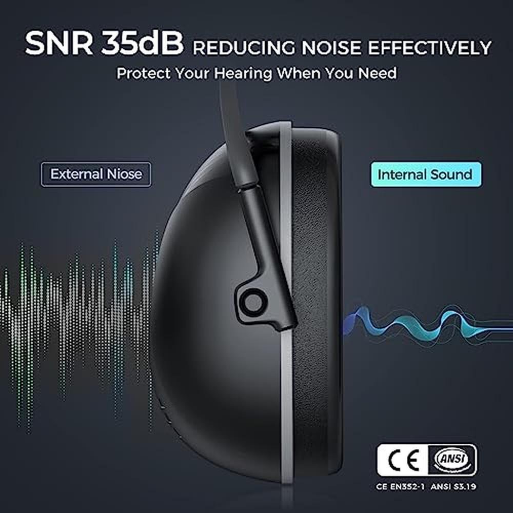 SNR 35dB Hearing Protection Ear Muff, Effective Ear Protection, Noise Cancelling Headphones for Adults Kids Mowing Autism, Adjustable Noise Cancelling Ear Muffs, Safety Earmuffs with Storage Bag