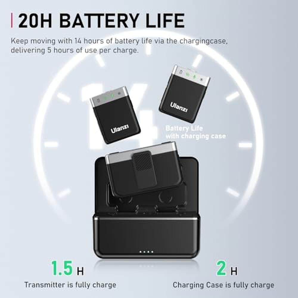 Experience the ultimate in wireless audio with the ULANZI AM18 Wireless Lavalier Microphone, a premium-grade, high-end solution designed for discerning content creators, videographers, and live streamers. This sophisticated, compact, and versatile audio device boasts an impressive 200m/656ft range, ensuring uninterrupted, crystal-clear audio capture for DSLR cameras, iPhone, Android devices, and other high-quality recording equipment. The ULANZI AM18 features advanced noise cancellation technology, effectively minimizing background noise and delivering superior, top-tier sound quality. With its long-lasting 20-hour battery life, this mini lapel mic is perfect for extended filming sessions, live events, and video productions, providing users with the freedom to create without interruption. Whether you're looking for a reliable, high-performance microphone for live streaming, video conferencing, or filmmaking, the ULANZI AM18 is the ultimate choice, offering unparalleled audio excellence and convenience.