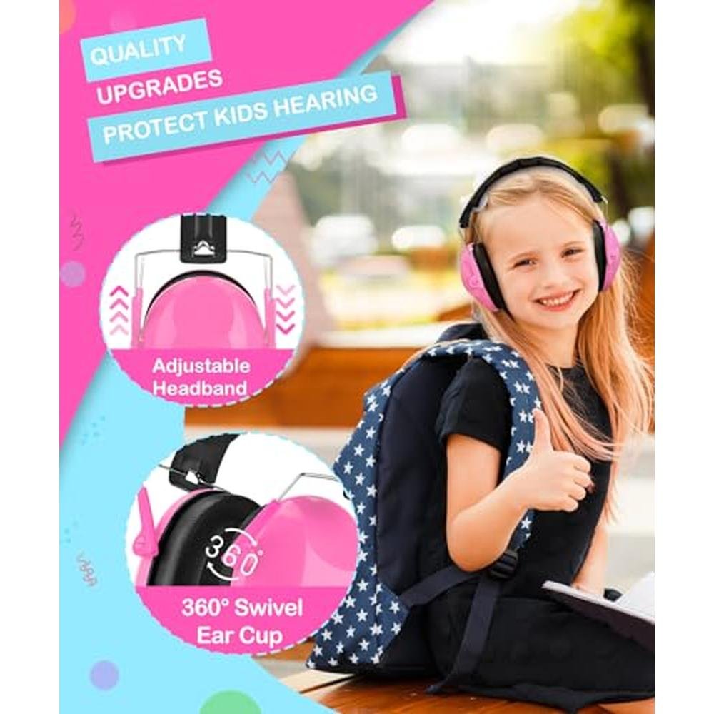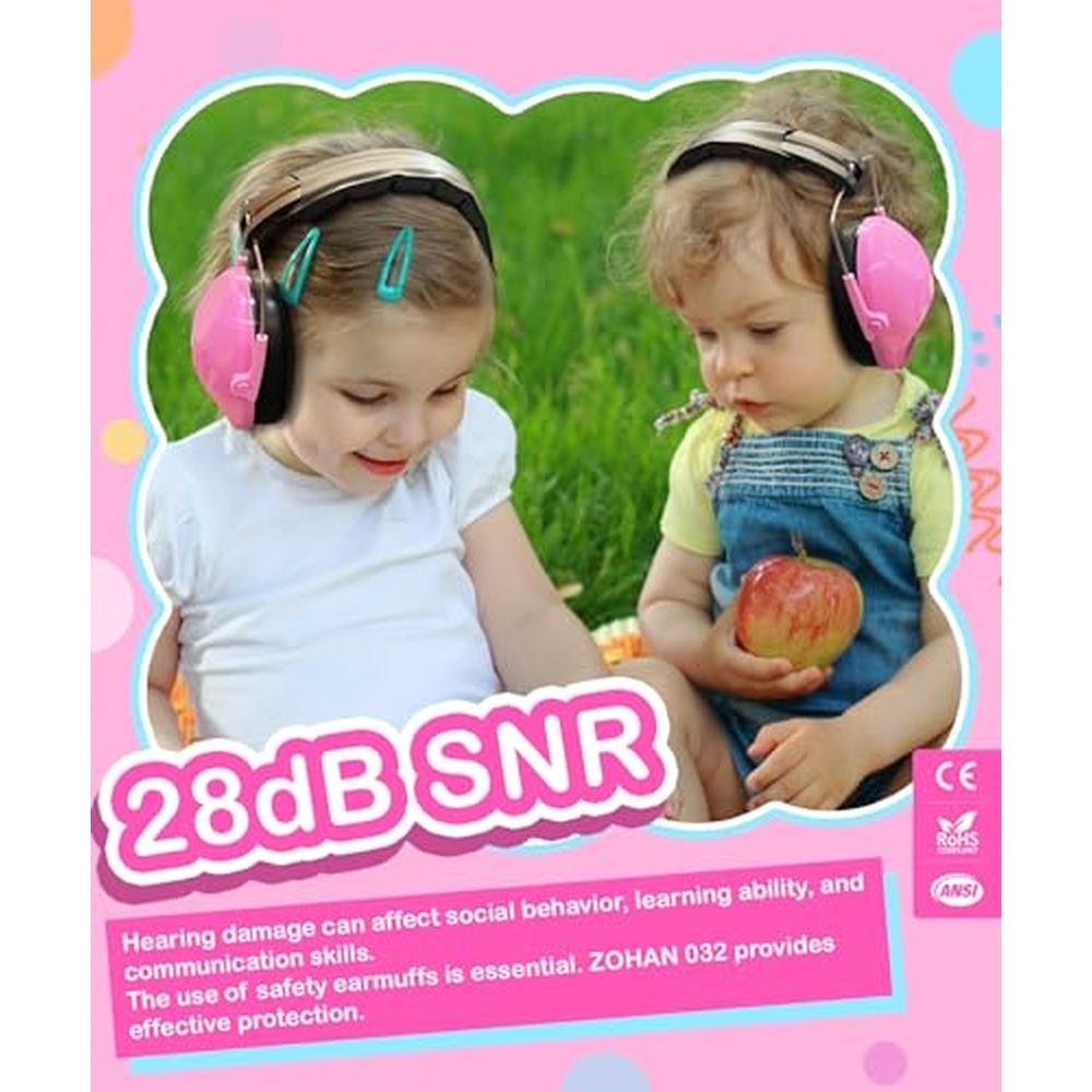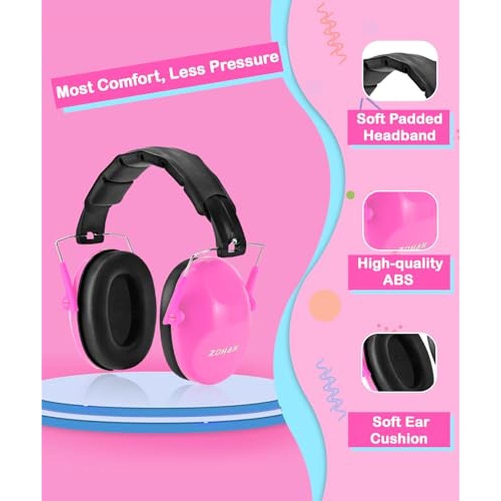 ZOHAN 032 Kids Noise Cancelling Headphones - 25dB NRR Kids Ear Protection, Hearing Protection Safety Ear Muffs for School Monster Truck Fireworks Traveling Studying Concerts Autism - Hot Pink