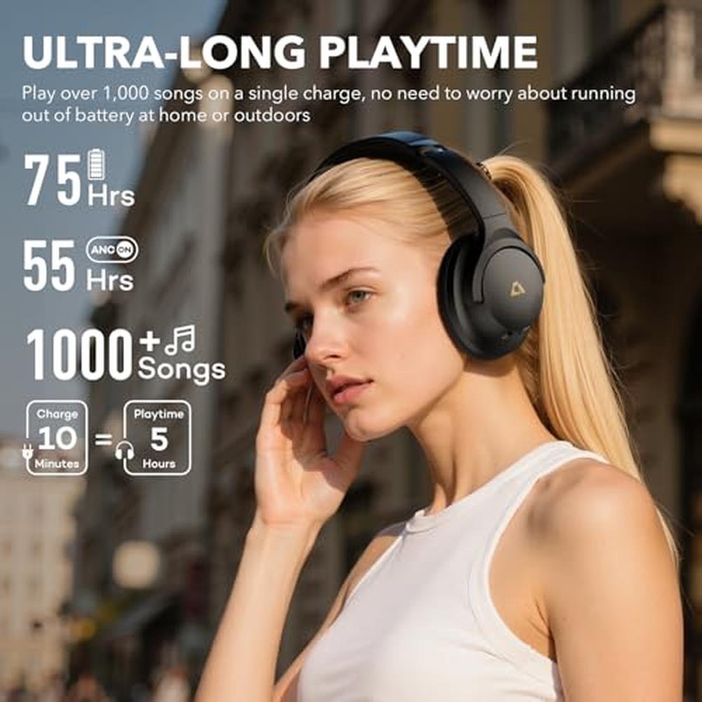 - Stay entertained for hours with a 75H playtime and 10-minute fast charge for 5 more hours of use, perfect for long-distance travel, workdays, or all-day listening.