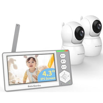 Baby Ganibs Baby Monitor with 2 Cameras Standby for 26-Hour Battery, Remote Control 4.3 IPS Video Baby Monitor No WiFi Up to 1000ft Range, ECO, Night Vision, Temperature, 2-Way Talk, 8 Lullabies