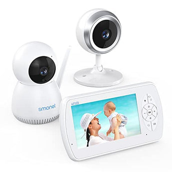 Baby Monitor with Video and Audio,SMONET 1080P Baby Monitor with 2 Cameras Remote Pan Tilt Feed Alarm Two-Way Talk Night Vision Crying Alarm