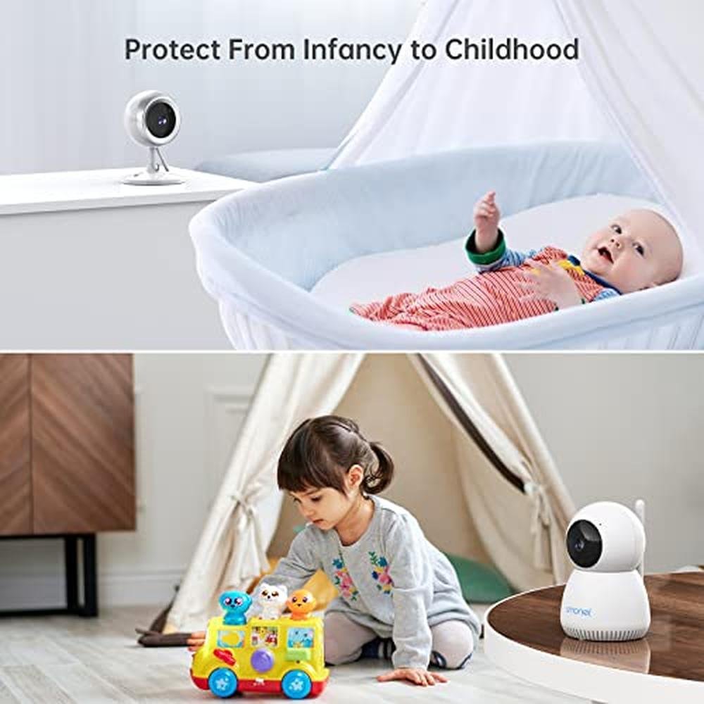 • Protect From Infancy to Childhood: This baby camera set comes with one dome camera and one pan-tilt camera, well-designed for not only infants but also children. Accompany your dear from infancy to childhood and also perfect for a family with 2 children.