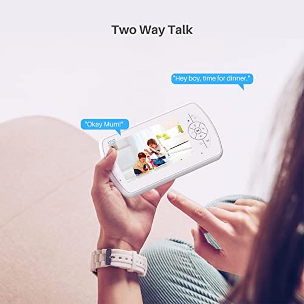 • Portable Baby Monitor: This baby monitor set includes a portable 4.3inch screen and 2 cameras. Easy to carry the monitor to your kitchen, garden, bedroom, or living room. The communication between the camera and screen is based on built-in Wi-Fi. Never worry about hackers.