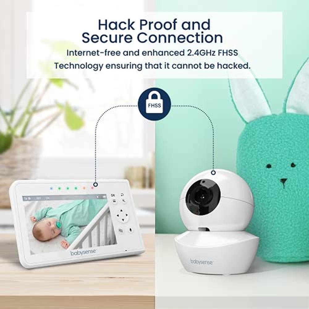 Your baby deserves the best care, and it cant get better than with the premium Babysense video baby monitor. The ultimate baby monitor is here to finally give you a true peace of mind when you do your day-to-day activities and your little angel is relaxing or sleeping in his own room. Highly detailed The vivid 4.3 LCD color video screen gives a clear viewing area. The screen features SPLIT-SCREEN feature, allowing to see both cameras or babies side by side on the same screen. You are sure to always know whats going on in your babys room! Unparalleled stability & wide range When it comes to best baby monitor, you cannot afford to settle for any cheaply-made baby camera monitor anymore. What you need is a 24/7 undisrupted connection with crystal clear audio & video. This is exactly what you get with the Babysense baby monitor with camera and its state-of-the-art 2.4GHz FHSS Technology paired with a supremely wide range of 960ft. Your baby calm and well rested at all times We know that your baby loves the familiar soothing sound of your voice, so we remastered our video baby monitor with superior 2-way talk back technology. Sing or talk to your baby or play lullabies and white noise sounds for a calm sleep. Even at night Use the 2x digital zoom with fully motorized Pan Tilt Zoom (PTZ) to overview the situation at any given point, even at night using the Auto Infrared Night Vision. Long battery life & notifications Enjoy long battery life with a battery level indicator. Get advanced notifications with Low/High-Temperature alerts and Out Of Range and Low Battery warnings. Now, Go, Get your Babysense video monitor RISK-FREE! What youll get: Parent Unit x 1 PTZ Cameras x 2 Power Adapter x 3 User Manual x 1 Pre-installed Li-ion Battery