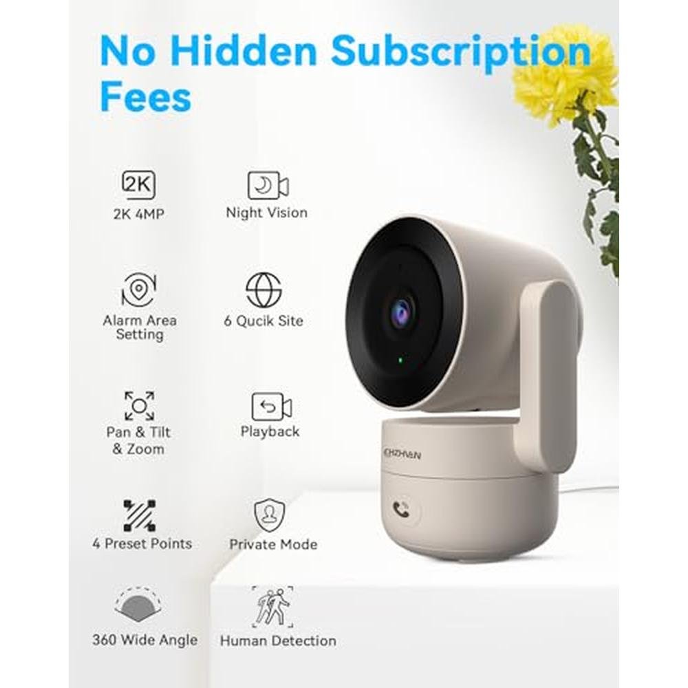 CHZHVAN Security Camera Indoor for Home, Cry Detection for Baby, 2.5K 4MP QHD, Pet Monitoring, Pan & Tilt, Motion Detection, Night Vision, 2-Way Audio, 2.4G WiFi, USB Powered, Local & Cloud Storage