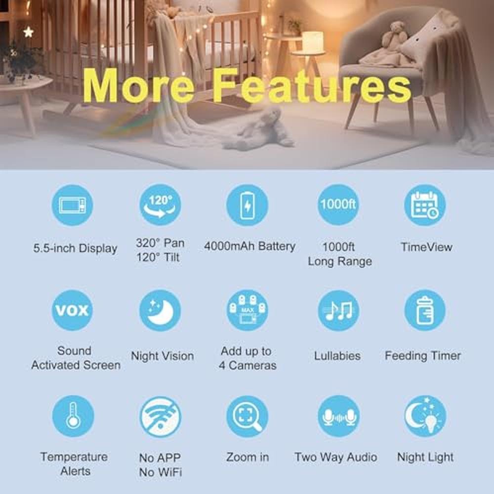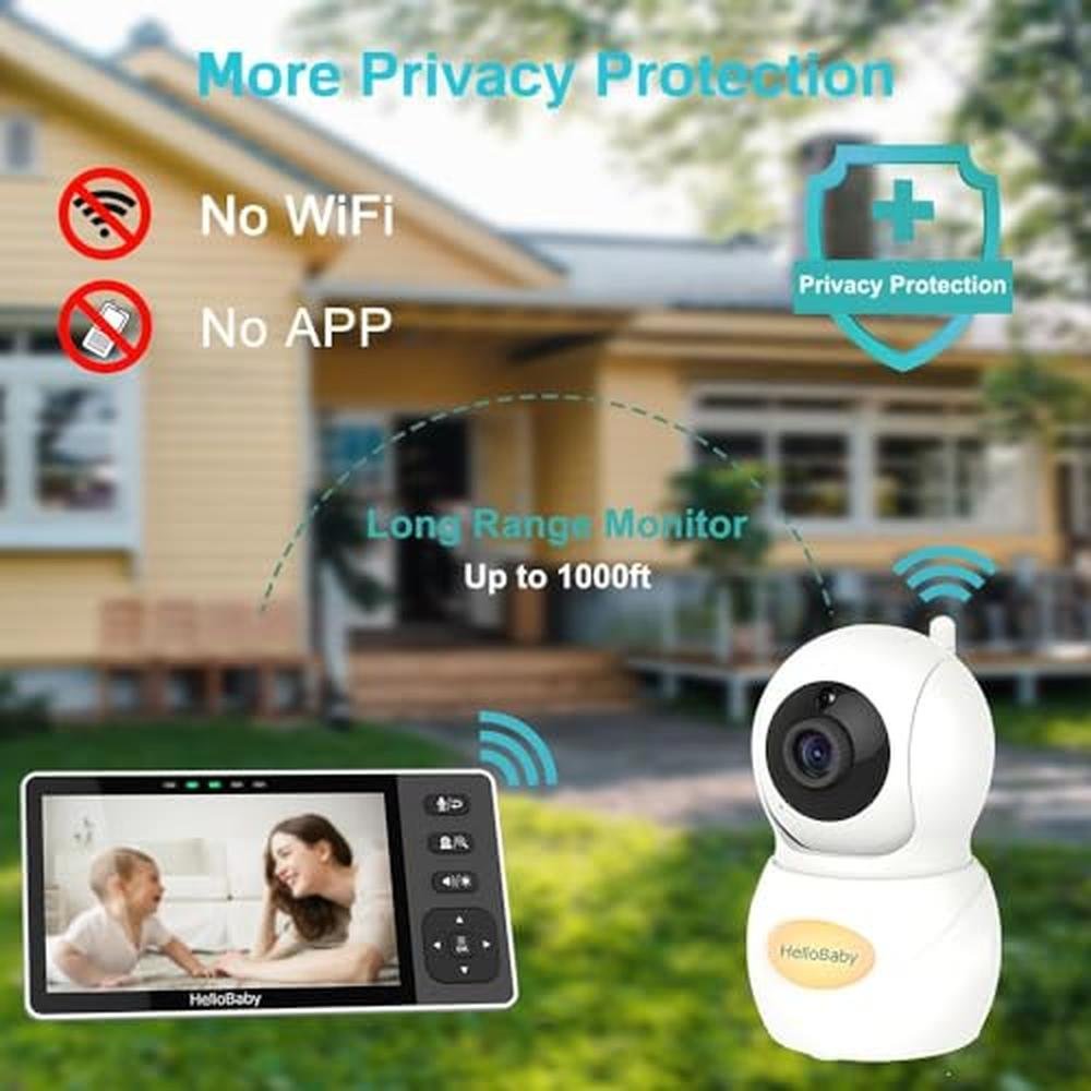 HelloBaby 720P 5.5 HD Baby Monitor with Camera and Audio No WiFi, Video Baby Monitor, Remote Pan Tilt Zoom Wide View Range, 1080P Infant Camera, Night Light, Hack Proof, 4000mAh Battery, 1000ft