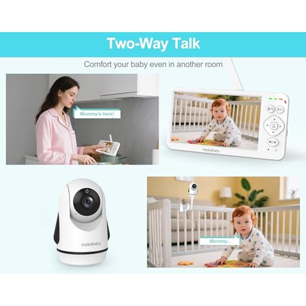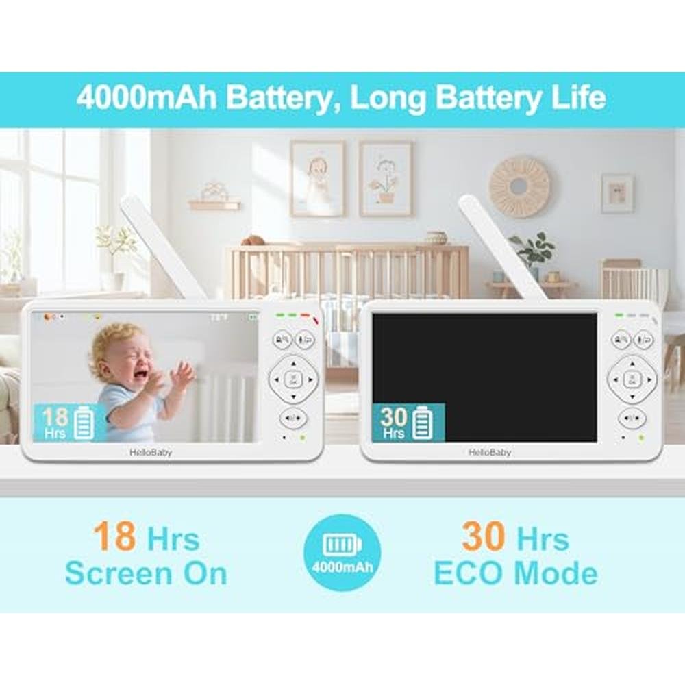 • 1-Unique 6-inch Screen, HelloBaby's Global FirstLarge 6-inch colorful and clear screen with 2x digital zoom. The extra-large IPS screen delivers clear and detailed images, making it easy to watch your baby's every move from any angle of the screen. Support 2X digital zoom, remote control to magnify the details, easy to observe baby's expression and breathing