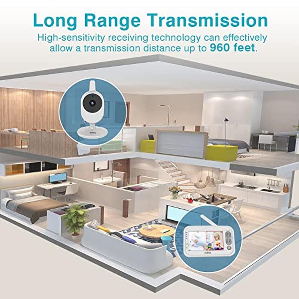 • Soothe & Comfort Your BabyUnlike some one-way audio options, our baby monitor features two-way talk through a built-in intercom. Comfort your baby with your own voice. It has ULTRA-LONG RANGE of up to 1000 feet open space. When you go too far, youll get extra peace of mind of receiving out-of-range warning.
