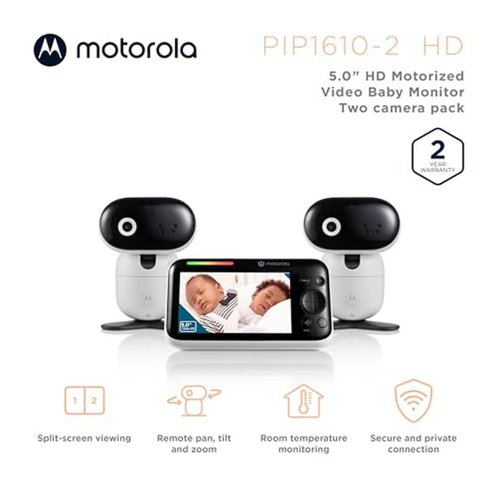 Motorola Baby PIP1610 HD - 5 Motorized Video Baby Monitor w/ 2 Cameras, Wall Mount, 1000ft Range, Two-Way Audio, Room Temperature Monitoring - Private Connection (No Wi-Fi, Does Not Use App)