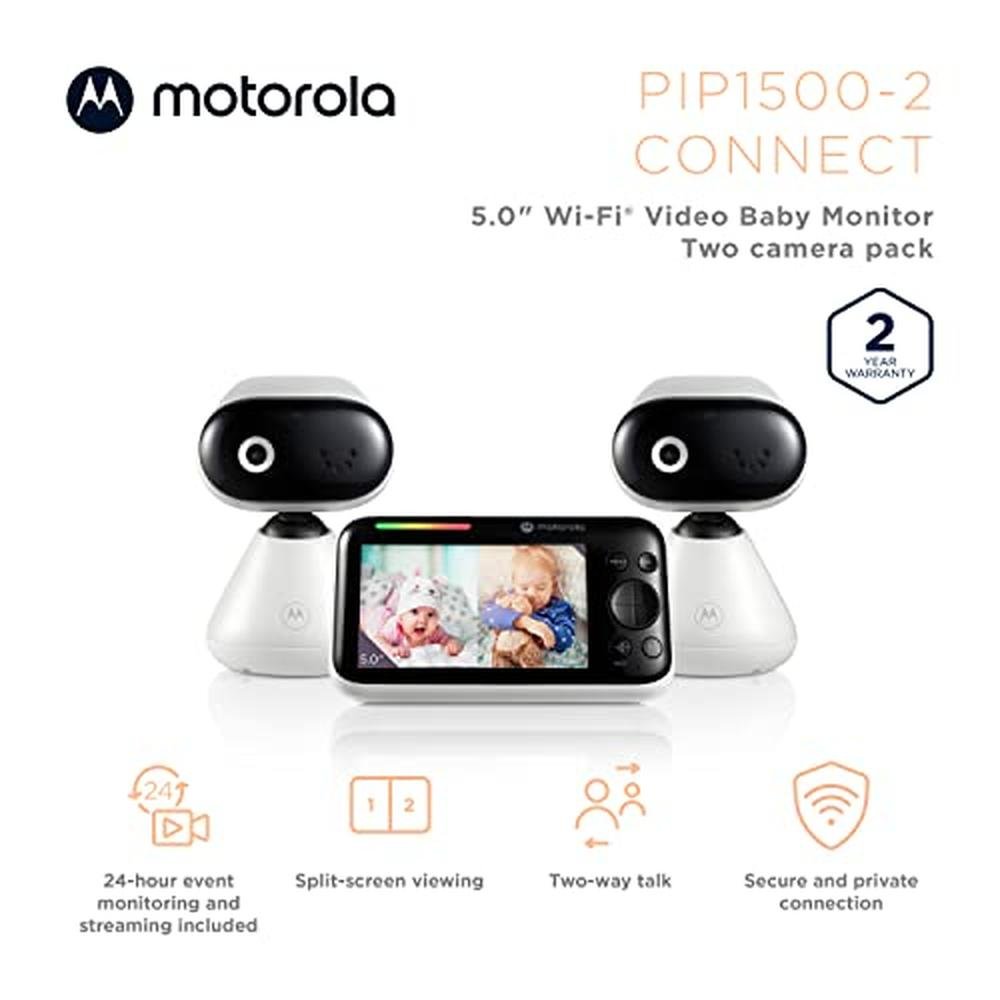 Motorola Nursery PIP1500 2-Camera Video Baby Monitor, 5 Wall Mount, 1000ft Range, 2-Way Audio, Split-Screen, Pan/Tilt/Zoom, Room Temp, Lullabies