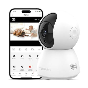TUGARD Security Camera, 2MP Indoor Camera 360 Pet Camera for Home Security w/Motion Tracking, Phone App, 2-Way Audio, IR Night Vision, Siren, Compatible with Alexa & Google Assistant(2.4GHz ONLY).