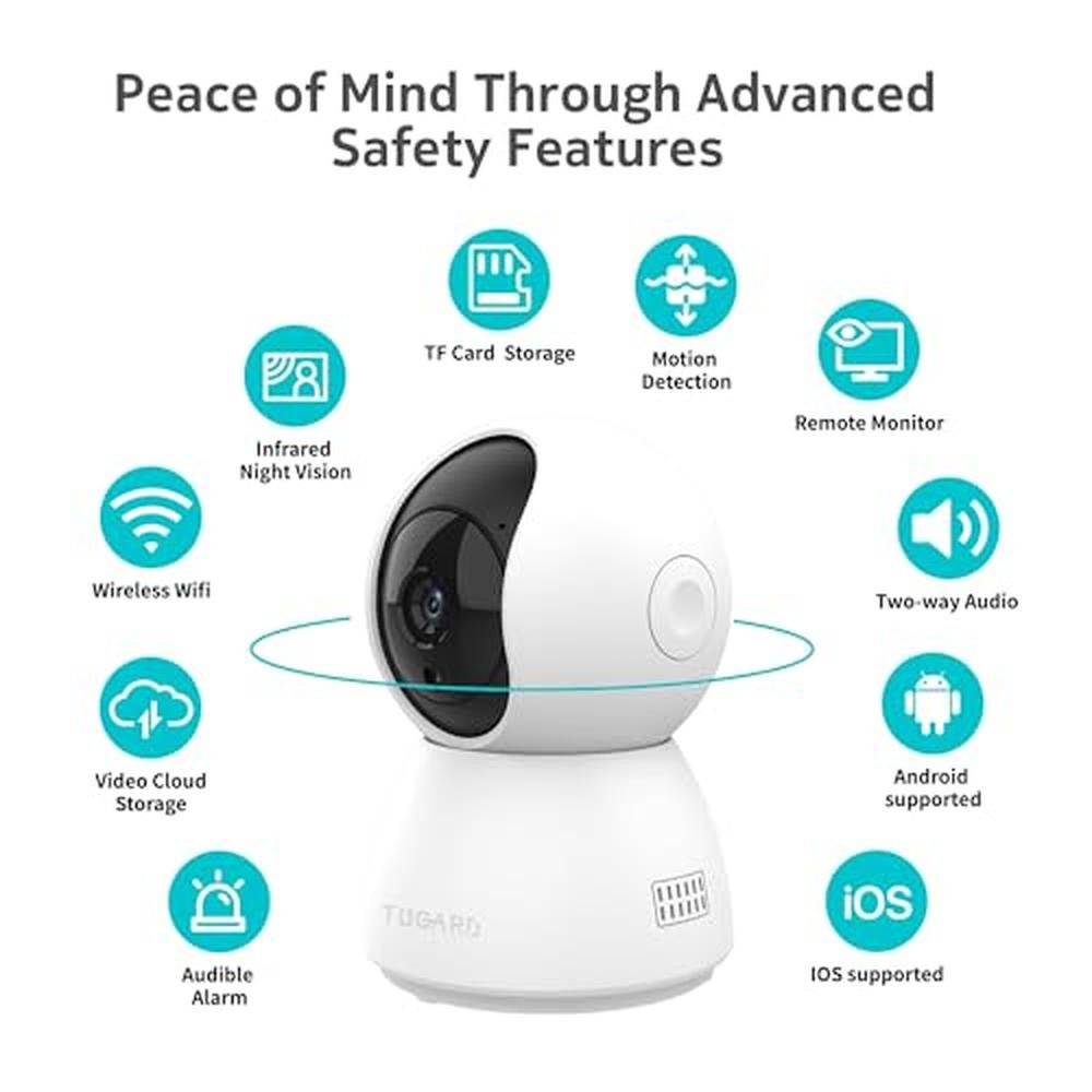 TUGARD Security Camera,2MP 355 Indoor Camera for Pet & Baby,Home Security with Phone App, Motion Tracking,2-Way Audio,IR Night Vision,Compatible w/Alexa & Google Assistant(2.4GHz ONLY)