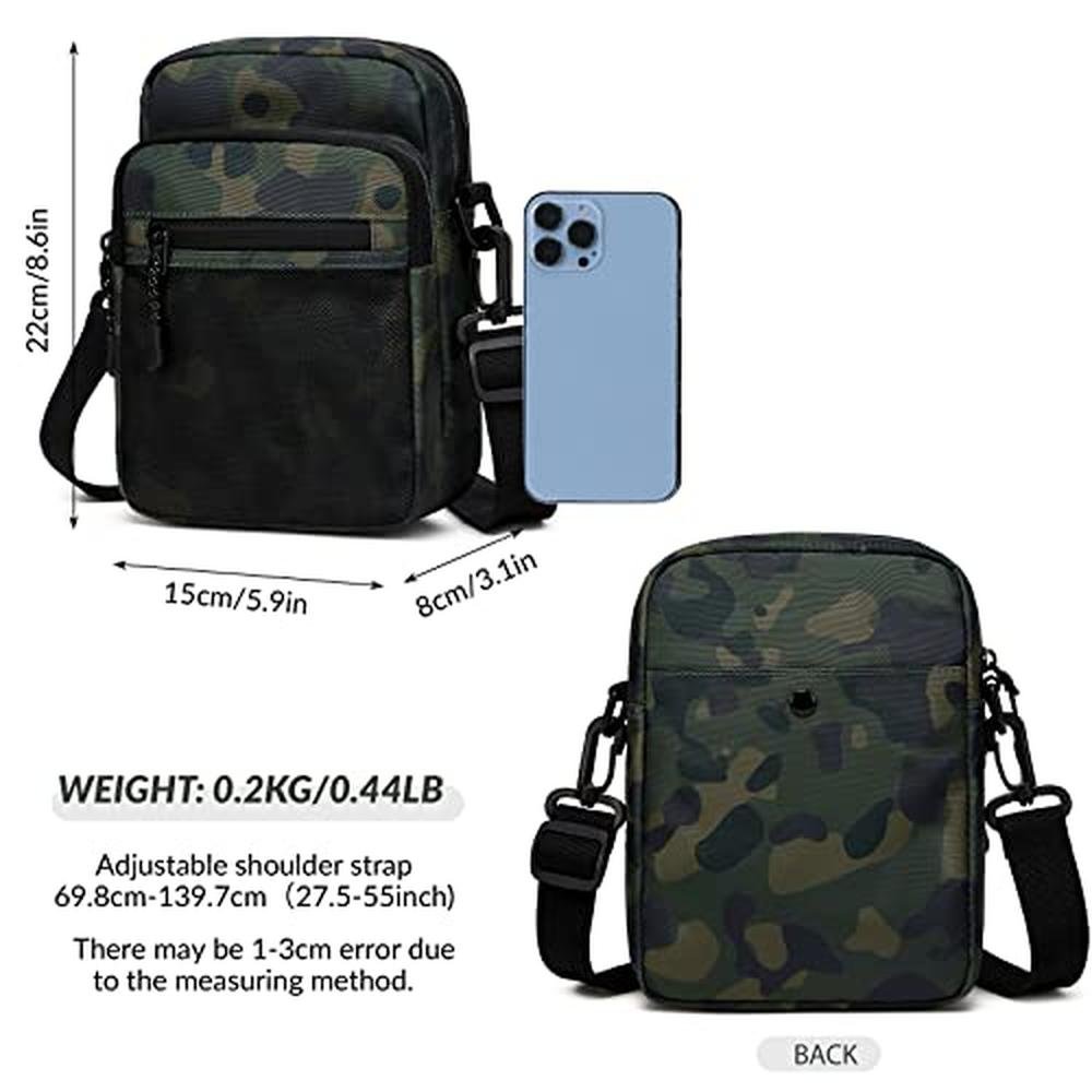 Lohol Small Messenger Bag for Men Women, Water Resistant Adjustable Cross Body Bag Shoulder Bag for Travel Sports (Camo Green)