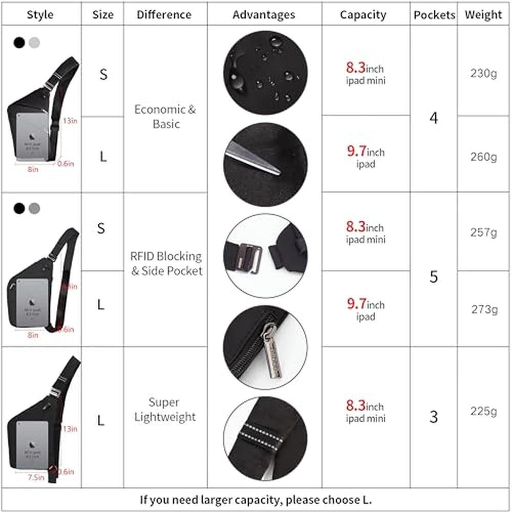 - Light Weight Sling Bag: This sling bag for men women is made of sturdy nylon and waterproof and wear-resistant nylon materials which make it more portable and durable while you go out with it.