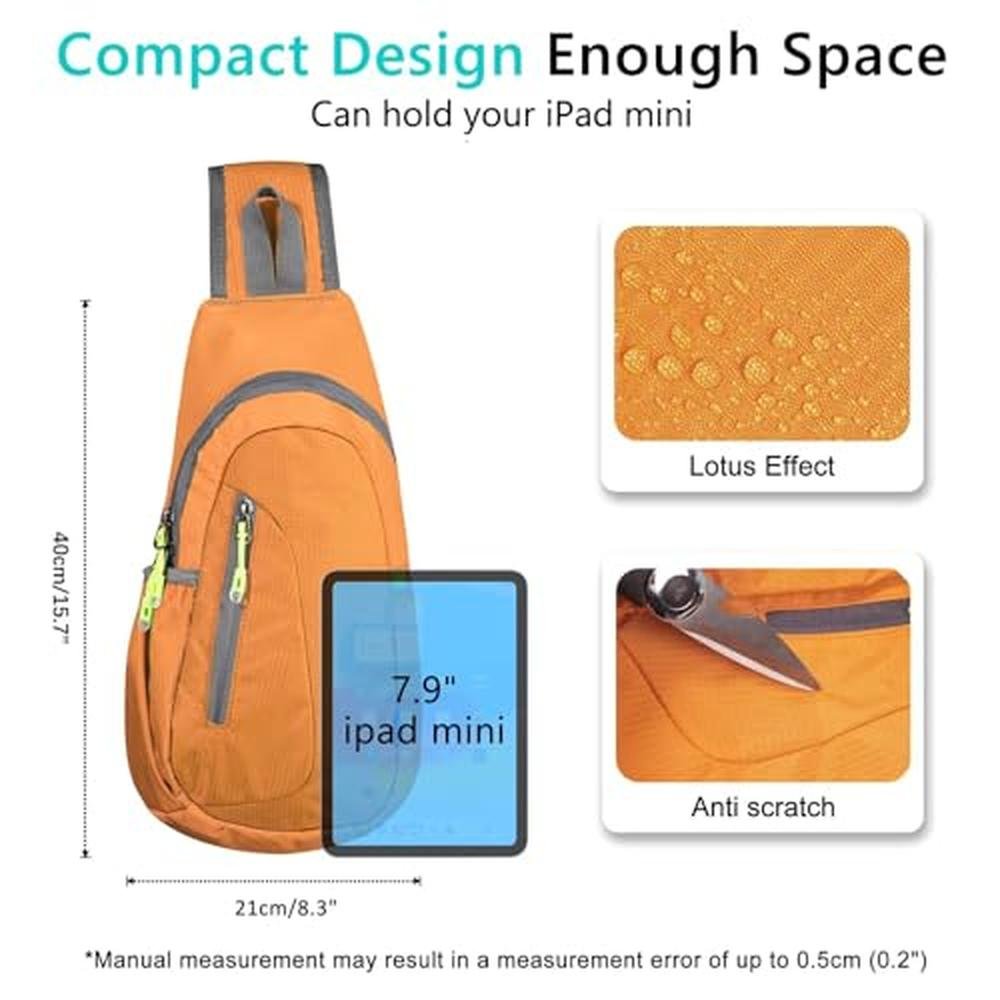 TITECOUGO Small Sling Bag Lightweight Crossbody Bag for Women Men Hiking Backpack Travel Shoulder Bag Chest Daypack for Gym Work Outdoor Sports Orange