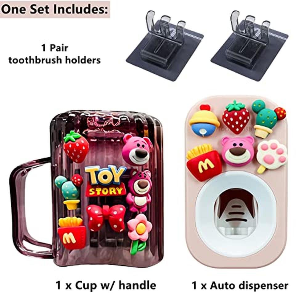- Economy & must have set - Includes 1 piece auto toothpaste dispenser + 1pc toothbrush holders + 1 piece cute toothbrush cup