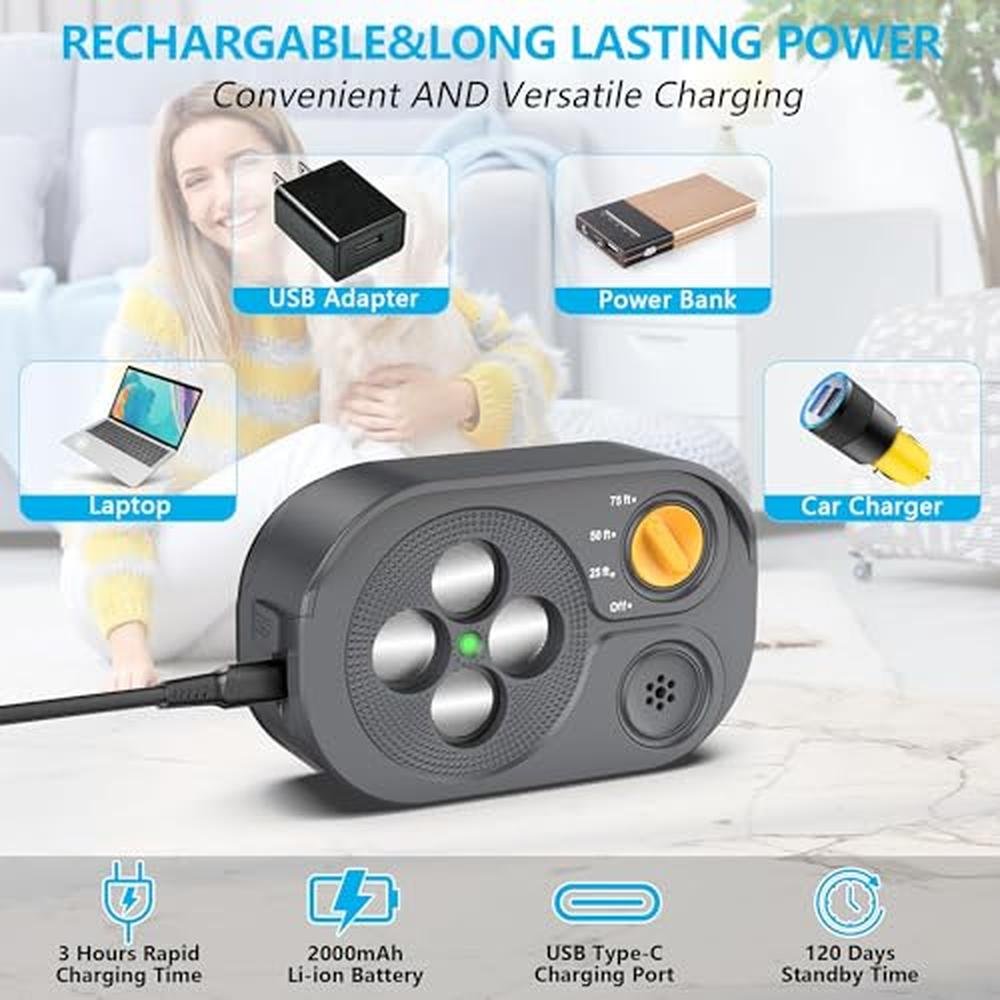 - Quick Recharge, Enduring Performance: Need efficiency? Our Neighbor Dog Silencer charges swiftly in just 3 hours, thanks to its robust 2000mAh Li-ion Battery. With a convenient USB Type-C Charging Port, maintaining its power is hassle-free.