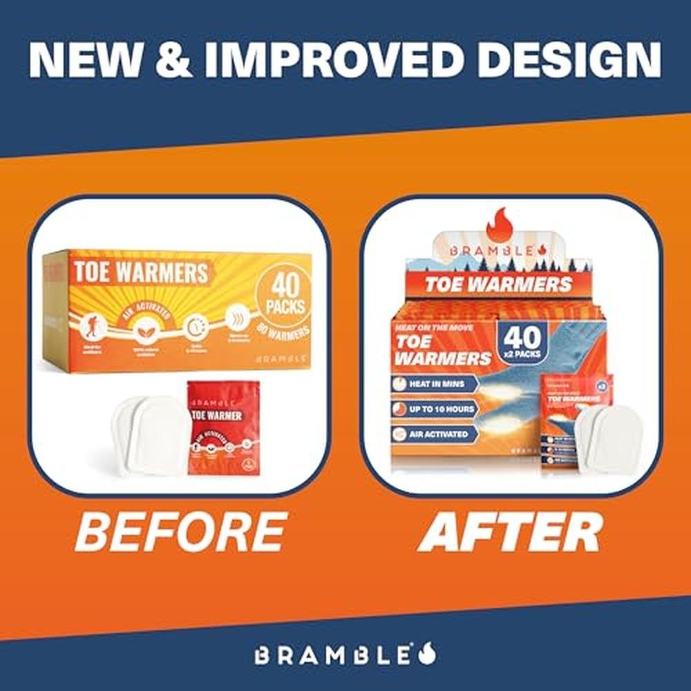 Foot Warmers for Cold Feet | Bramble 80 Adhesive Toe Warmers | Up to 10 Hours of Heat