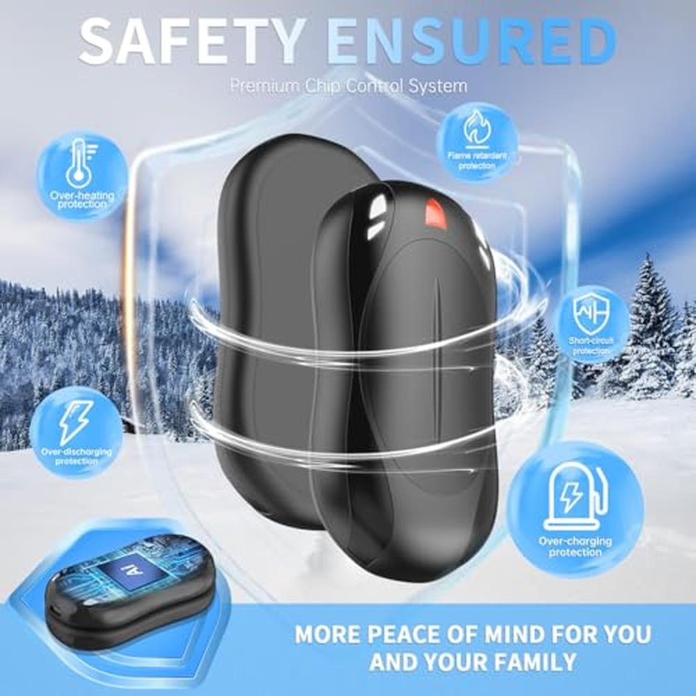 - Rechargeable hand warmers with 6000mAh AI Smart Chips for prolonged heat