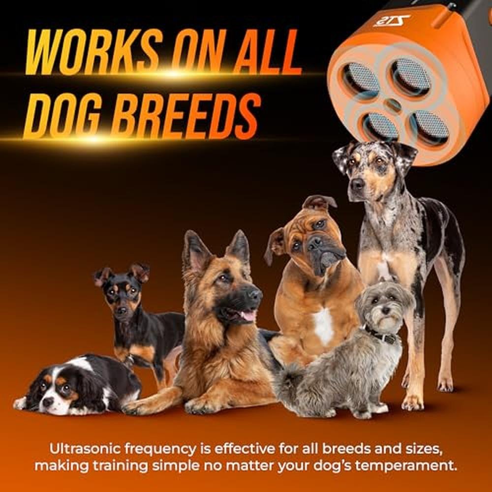 • Control Barking from a Distance Up to 35ft RangeDogs barking at the fence or chasing others on walks? Stay in control without getting too close. Our ultrasonic dog trainer reaches up to 35 feet, delivering fast and effective correction wherever you are. Ideal for use indoors or outside, this bark shield for dogs keeps your dog focused, calm, and responsive. With 4X stronger ultrasonic waves, it ensures faster results and covers more space perfect for large yards, busy parks, or neighborhood strolls.