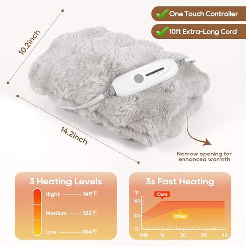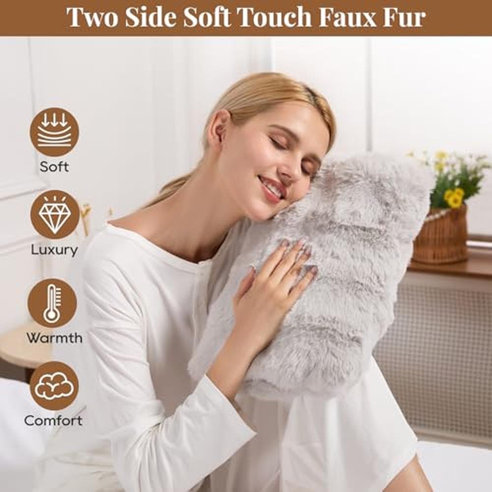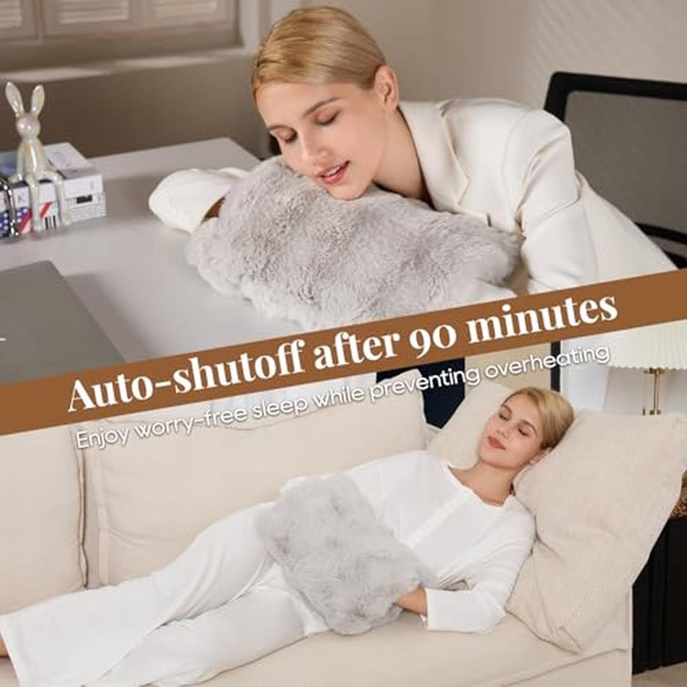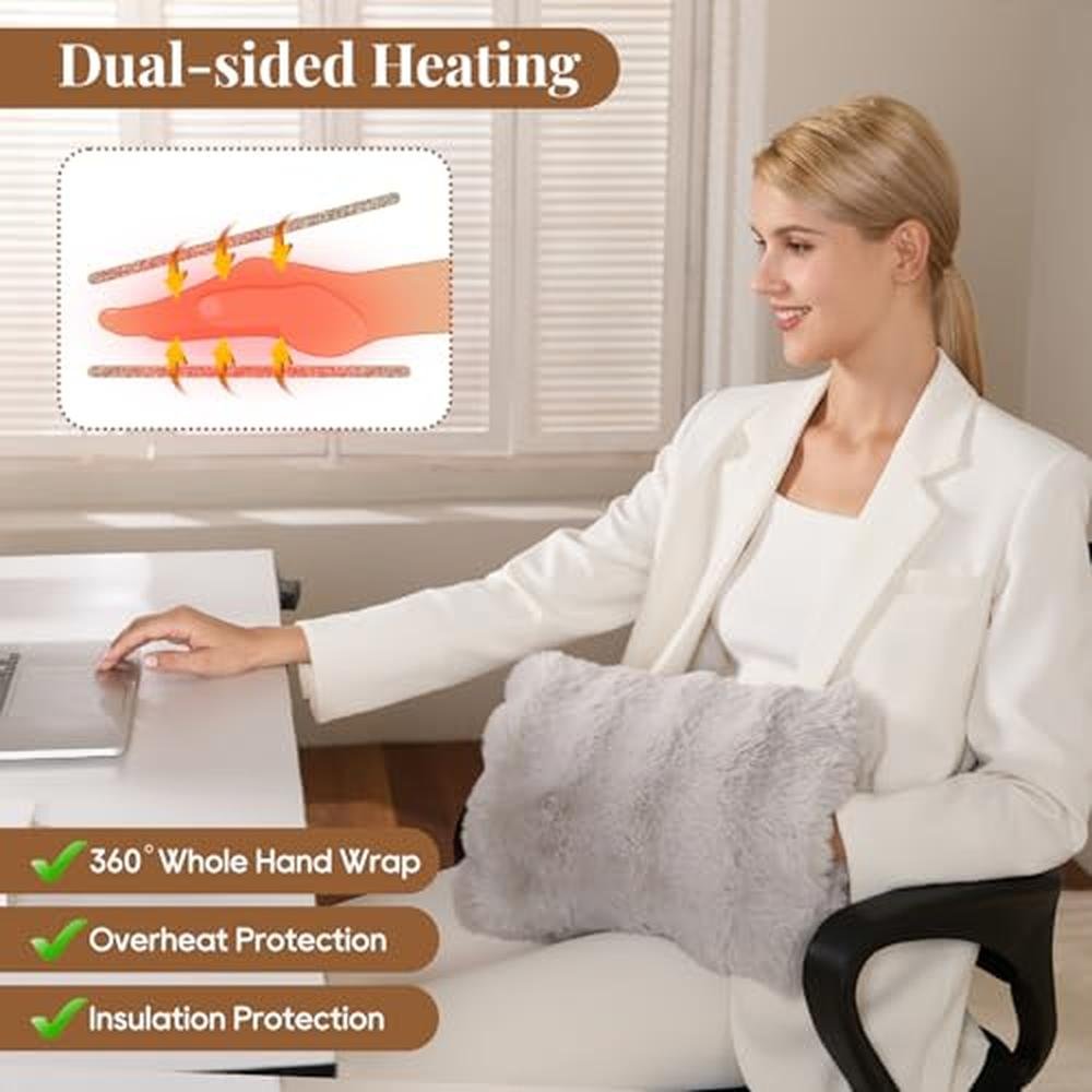 Hand Warmer | Luxury Faux Fur Electric Hand Warmer for Fingers Arthritis Relief | Double-Sided Heating Pad with 3 Levels Auto-Off