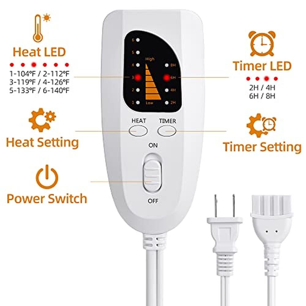 - High Security & Durable: The heating foot warmer is a single circuit heating wire, intelligent temperature sensing and automatic control power switch function, 60/140"F overheat protection. With no noise, energy saving, power saving and environmental protection, the LED controller can easily to adjust the heat.