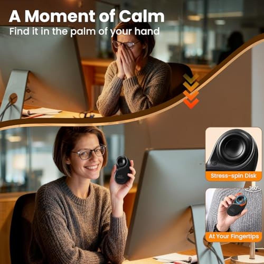 - Comfortable grip with soothing motion and smooth-spinning Stress-spin Disk for easing tension