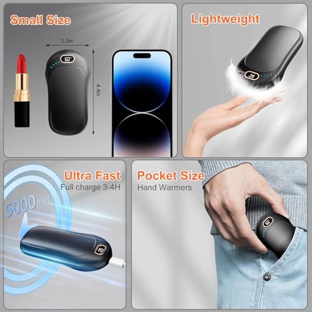 Experience the ultimate in comfort and warmth with our premium hand warmers, expertly designed for both outdoor and indoor use. Our high-end hand warmers for sale come in a 2-pack, offering an impressive 17 hours of warmth with dual heat settings and 3 levels of heat up to 140°F, making them the best buy hand warmers on the market. Whether you're looking for hand warmers near me or hand warmers on Amazon, our rechargeable hand warmers are a superior alternative to disposable options, providing long-lasting warmth and comfort. With their compact design and reusable functionality, you can indulge in the freedom to enjoy winter adventures without sacrificing warmth and comfort.