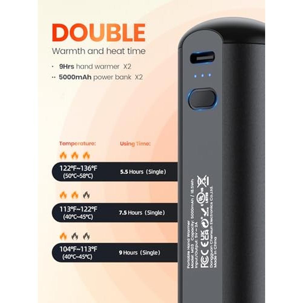 Experience the ultimate in winter warmth with our premium hand warmers, expertly designed for outdoor enthusiasts and anyone seeking a reliable heat source. Our high-end hand warmers for sale come in a 2-pack, featuring a superior 10000mAh magnetic electric design that provides up to 9 hours of warmth on a single charge. With three levels of heat, you can adjust the temperature to your liking, reaching a maximum of 136F. As a top-tier hand warmer, our product is not only effective but also eco-friendly and reusable, making it a great alternative to disposable hand warmers. Whether you're looking for hand warmers for football, hand warmers near me, or hand warmers amazon, our rechargeable hand warmers are the perfect choice. Elevate your winter experience with our sophisticated, high-performance hand warmers, expertly crafted to keep you warm and cozy in style.