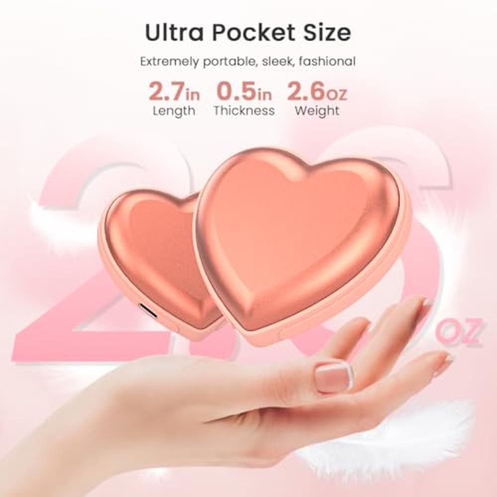 Hand Warmers | Rechargeable 2pcs Cute Heart-Shaped 5200mAh Electric Hand Warmer Gifts for Women for Outdoor | Long-Lasting Heat